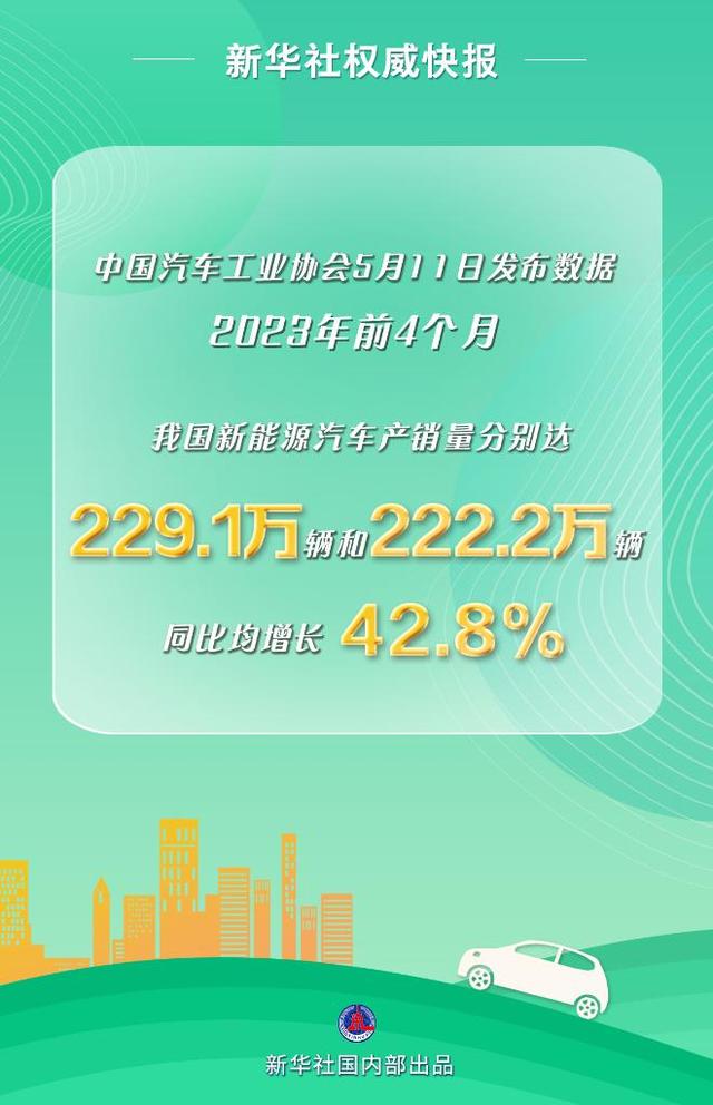 中國汽車工業(yè)協(xié)會5月11日發(fā)布數(shù)據(jù)顯示,2023年前4個月我國新能源汽車產(chǎn)銷量分別達(dá)229.1萬輛和222.2萬輛,同比均增長42.8%。