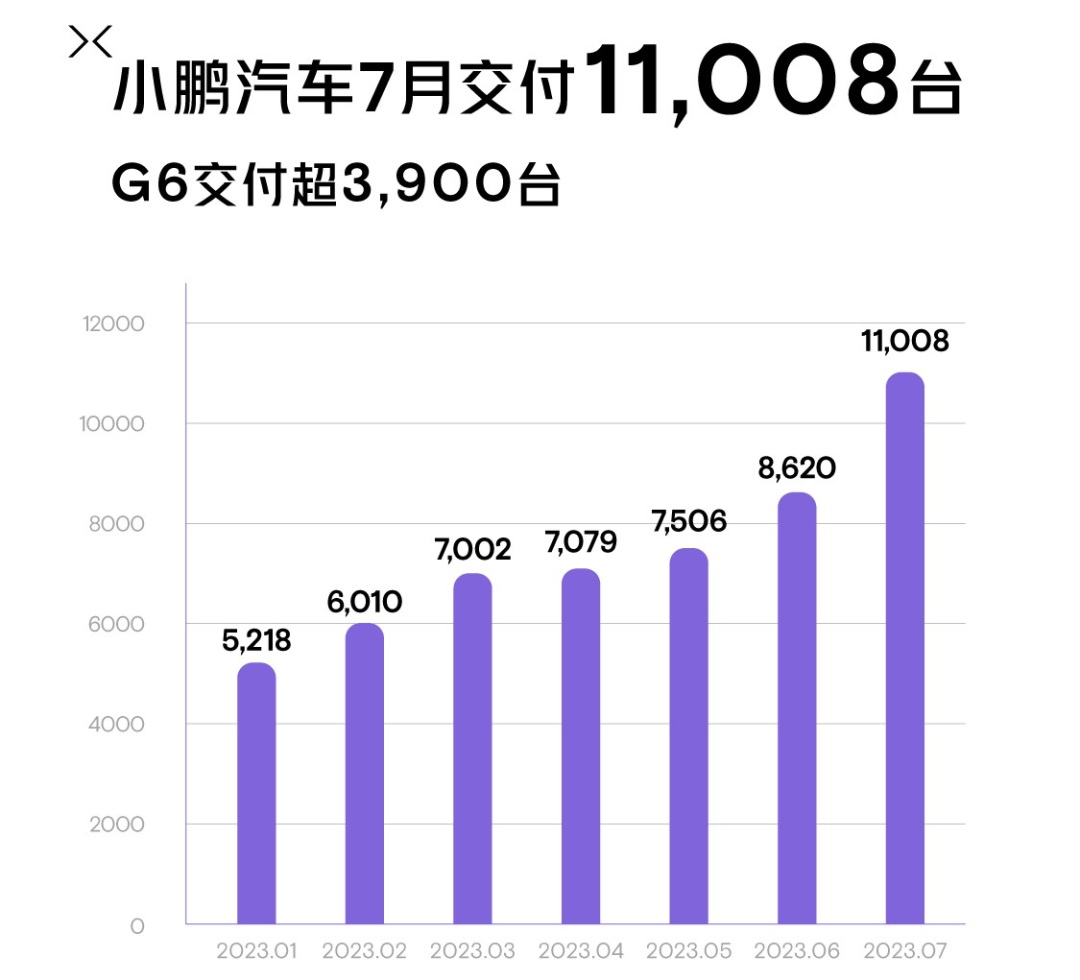 值得一提的是,于6月29日正式上市的小鵬G6在7月即交付超3,900輛,也幾乎以“一己之力”帶動了品牌銷量在2023年首次“破萬”。