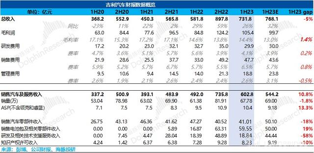 根據(jù)海豚君計(jì)算,公司 2023 年上半年實(shí)現(xiàn)單車收入(不含領(lǐng)克和睿藍(lán))10.4 萬元,同比增 10%,超出市場預(yù)期 9.2 萬元。