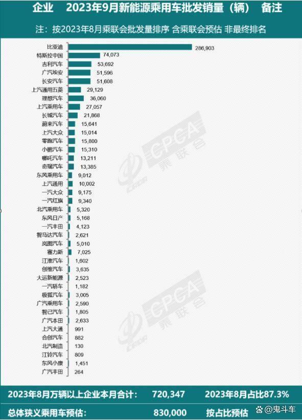 10月8日,“崔東樹”公眾號發(fā)布乘聯(lián)會2023年9月新能源乘用車廠商批發(fā)銷量快訊。從這份數(shù)據中看到,9月份,新能源市場還是處于增長狀態(tài),但整體增幅并不沒有想象中那么高歌猛進。