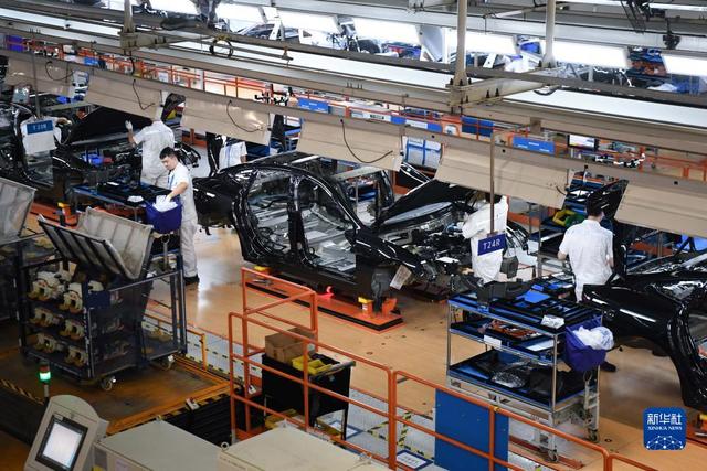 10月9日,工作人員在廣東肇慶小鵬汽車智能網(wǎng)聯(lián)科技產(chǎn)業(yè)園內(nèi)的總裝生產(chǎn)線上工作。