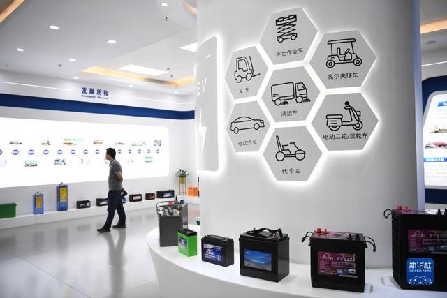 10月9日,參觀者在廣東肇慶理士電源技術(shù)有限公司觀看各種類型的電池產(chǎn)品。