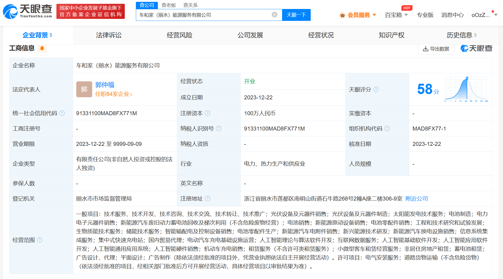 近日,車和家(麗水)能源服務有限公司成立,法定代表人為郭仲福,注冊資本100萬人民幣,經(jīng)營范圍含光伏設備及元器件制造、電池制造、電力電子元器件銷售、電池零配件生產(chǎn)、人工智能應用軟件開發(fā)、小微型客車租賃經(jīng)營服務等。股東信息顯示,該公司由理想汽車旗下北京車和家能源服務有限公司全資持股。
