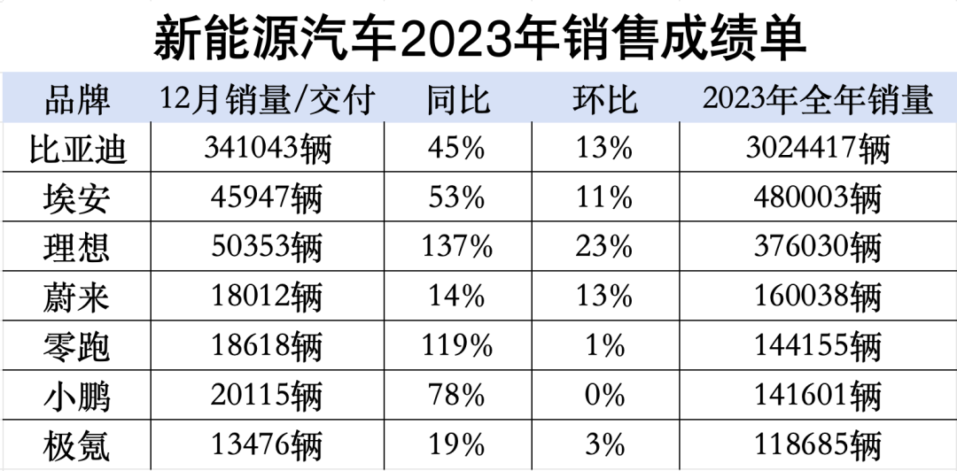 新年第一天,新能源車企紛紛交出2023年成績單,備受市場關注的中國新能源汽車年度銷量排名隨之揭曉。