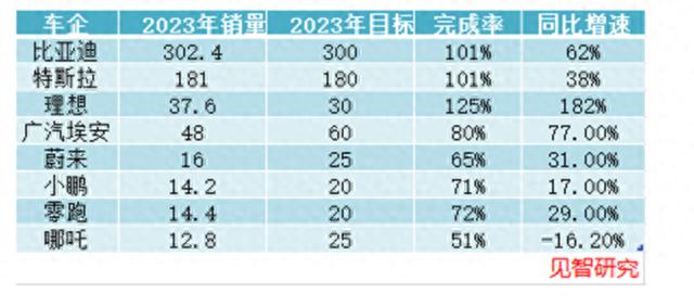 2023年中國新能源汽車市場競爭激烈,頭部車企普遍完成年度銷量目標(biāo),但其他新勢力車企表現(xiàn)不佳,與頭部車企的增速相比普遍偏低,部分甚至出現(xiàn)負增長。