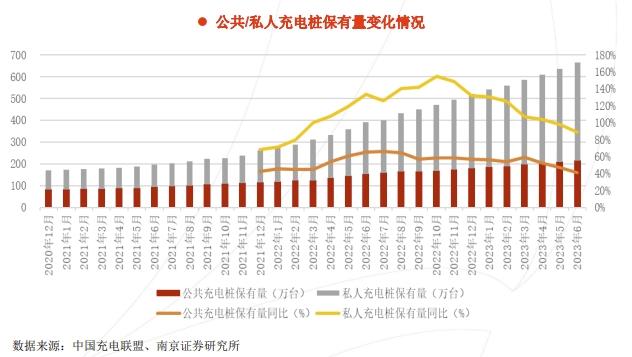 以2023年為例,在新增的充電樁中,私人充電樁的規(guī)模遠比公用充電樁大,前者約是后者的2.6倍。而私人充電樁是隨車配建的,也就是說,新增充電樁的車樁比雖然已經(jīng)接近1:1,但其中有七成多是私人充電樁,不對外開放。