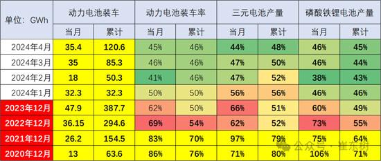 5月18日,乘聯(lián)會(huì)秘書(shū)長(zhǎng)崔東樹(shù)撰文指出,目前動(dòng)力電池的產(chǎn)量中裝車(chē)的比例在不斷降低。2020年動(dòng)力電池裝車(chē)率達(dá)到76%,2021年是70%,2022年是54%,2023年是50%,2024年1-4月已經(jīng)降到了46%。