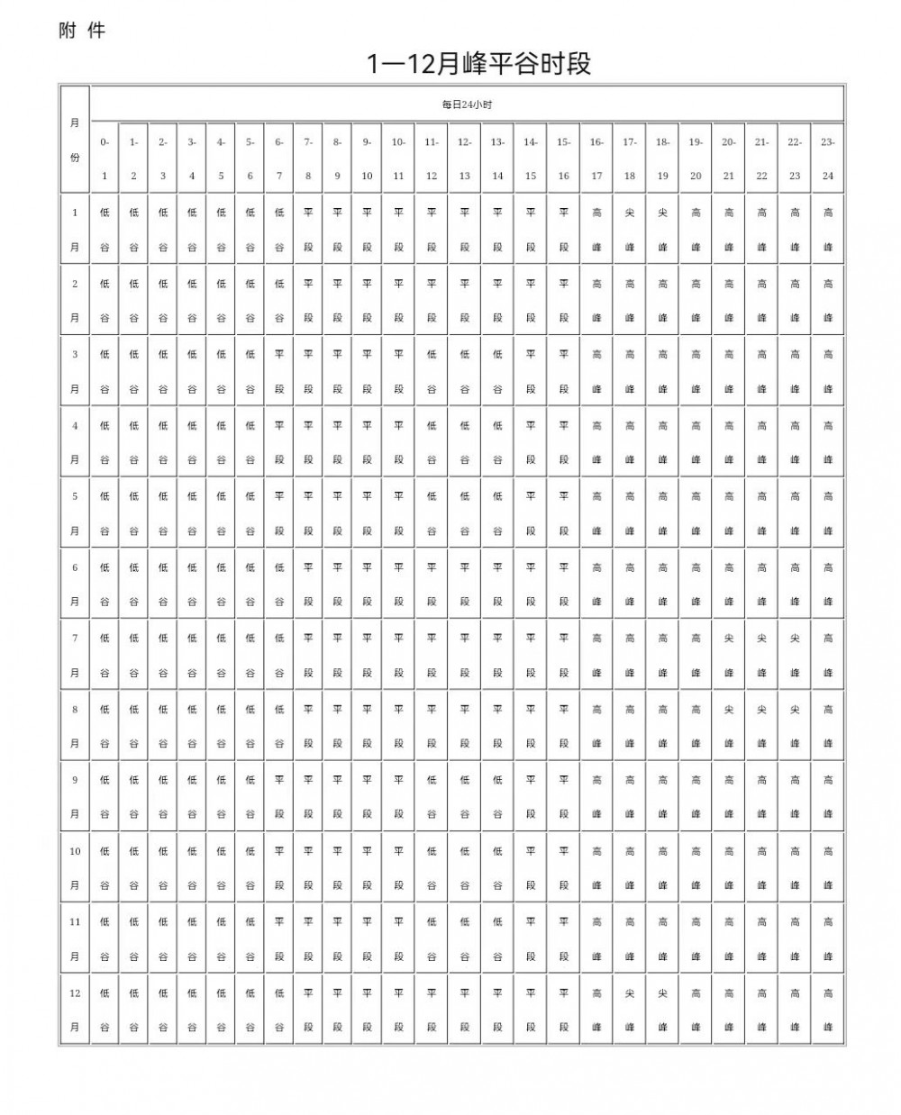1月、2月、12月,高峰(含尖峰)時段16:00至24:00,其中尖峰時段為1月和12月的17:00至19:00;低谷時段0:00至7:00,其他時段為平段。
