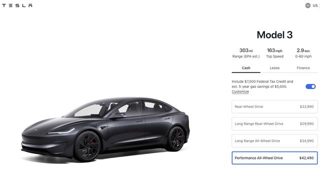 每經(jīng)AI快訊,特斯拉美國官網(wǎng)顯示,特斯拉在美國推出新款Model 3長續(xù)航后驅車型,售價為42490美元。
