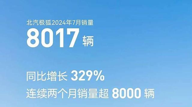 極狐汽車公布了其7月銷量為8017輛,同比增長329%,表現(xiàn)出了強(qiáng)勁的增長勢頭。至此,極狐已連續(xù)兩個(gè)月銷量超8000輛。