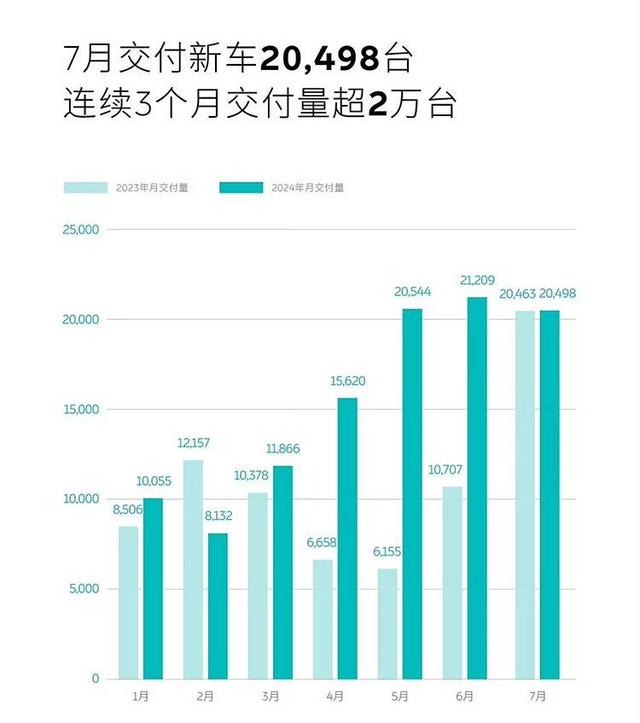 蔚來7月共計(jì)交付新車20498臺,同比增長0.17%,連續(xù)3個(gè)月交付量超2萬臺。今年1-7月,蔚來共交付新車107924臺,同比增長43.85%。截至目前,蔚來已累計(jì)交付新車557518臺。