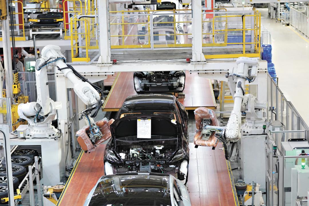 在總裝車間,汽車會經歷200多個加工工位(站點),其中很多站點都實現了無人化、全機器人操作。