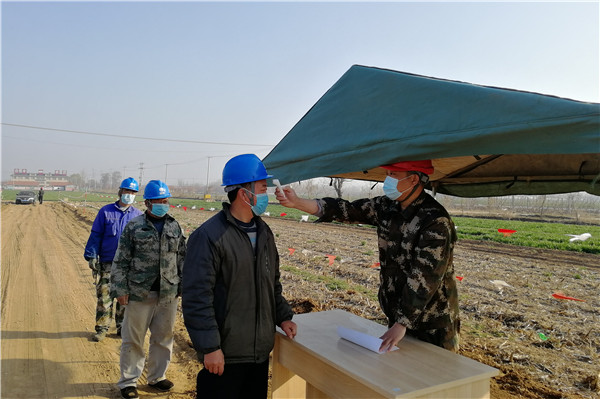 “您好,我是線路工程施工現(xiàn)場的疫情防控員,施工區(qū)域封閉式管理,進(jìn)場人員請(qǐng)主動(dòng)配合測量體溫”。