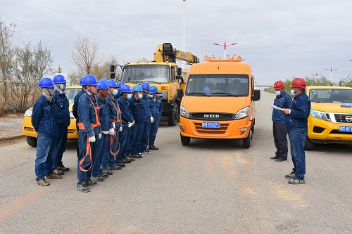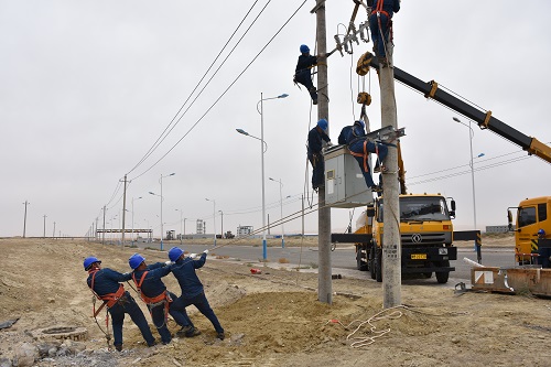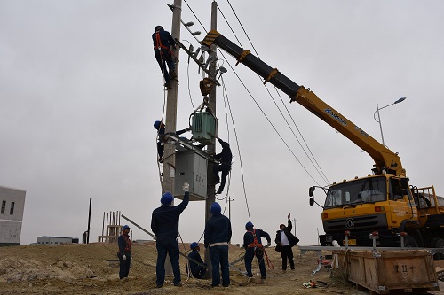 早上7點(diǎn),全體人員在雅布賴營(yíng)業(yè)所集合并開(kāi)會(huì),“今天的工作內(nèi)容為安裝變壓器,大家要注意做好安全措施,前不久剛發(fā)生的4·20事故我們要引以為戒,嚴(yán)格牢記‘十不干’,杜絕一切違章作業(yè)。”馬新民一邊發(fā)著新手套一邊提醒道。在10千伏9101中泉子Ⅰ回線管委會(huì)支14號(hào)桿處,作業(yè)人員要進(jìn)行立桿并安裝低壓綜合配電柜,呼嘯的寒風(fēng)加大了吊車吊物的難度,也更考驗(yàn)工作班成員之間的默契,“4人登桿,4人當(dāng)小工做地勤,1人協(xié)調(diào)指揮吊車”,負(fù)責(zé)人武開(kāi)旋迅速做出工作安排。“巴爺,幫我在小繩上系個(gè)瓷瓶”、“偉哥,你那邊高了,再低一點(diǎn)就好了”,“聽(tīng)我的,一二三,一起用力!”工作班成員各司其職、團(tuán)結(jié)協(xié)作,僅用時(shí)四個(gè)小時(shí),完成了對(duì)雅布賴工業(yè)園公變的安裝,進(jìn)一步保證了工業(yè)園用電負(fù)荷。
