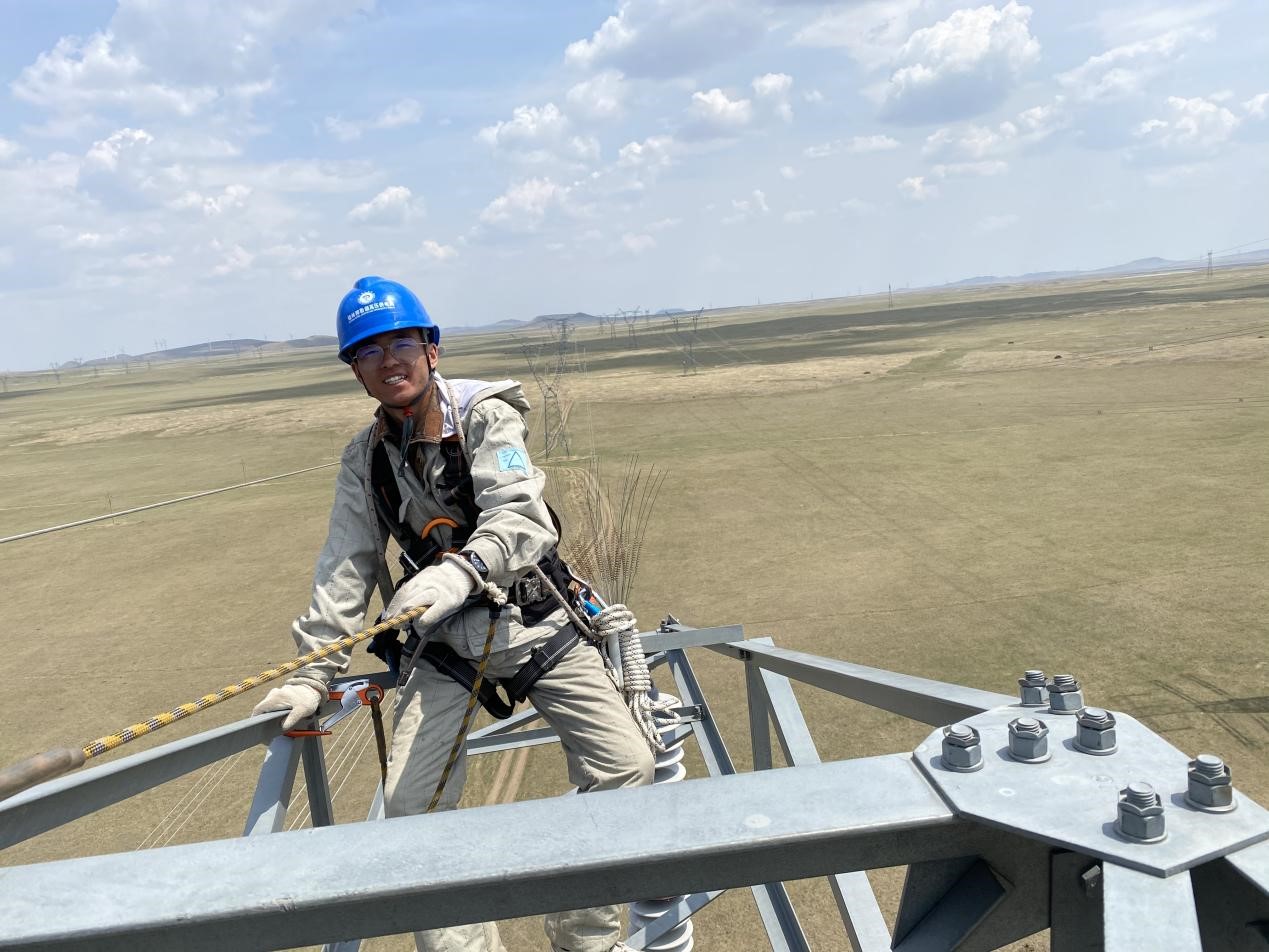 張喜峰、孫思豪,一位是高空檢修I班班長,一位是高空檢修II班的專責工,同樣為了檢修工作被阻截了回家的路,他們主動加入了應急檢修隊伍,為線路安全穩(wěn)定運行做好保障。張喜峰的孩子剛?cè)龤q,平時因為工作就與孩子相處不多,現(xiàn)在更因為疫情被分隔在兩地,每天只能通過視頻參與孩子的成長。孫思豪的妻子在烏海工作,今年剛結婚,妻子趕來錫林浩特看望丈夫,但因為丈夫在西烏旗參加檢修不能返回錫林浩特,奔赴千里,卻近在咫尺而不能相見。