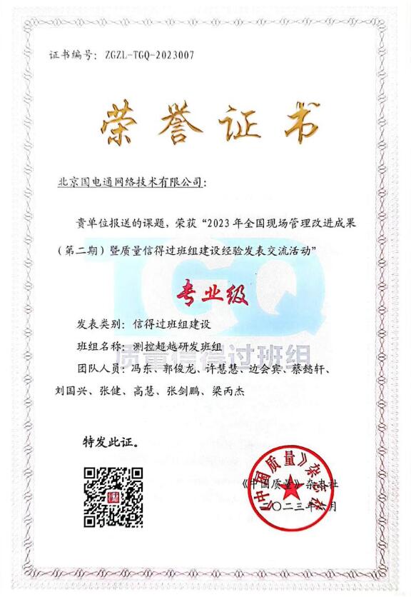 中國電力網(wǎng)訊(通訊員張俊偉)7月1日獲悉,國網(wǎng)信通產(chǎn)業(yè)集團國電通“測控超越研發(fā)班組”在2023年全國現(xiàn)場管理改進(jìn)成果(第二期)暨質(zhì)量信得過班組建設(shè)經(jīng)驗發(fā)表交流活動中獲得信得過班組建設(shè)二等獎。