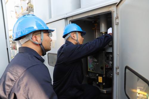 商丘供電公司集中專業(yè)技術(shù)力量,全力開展秋季檢修工作,確保設(shè)備安全穩(wěn)定運(yùn)行。圖為10月10日,該公司人員對220千伏華源變電站進(jìn)行設(shè)備檢修。(王輝 趙沖)