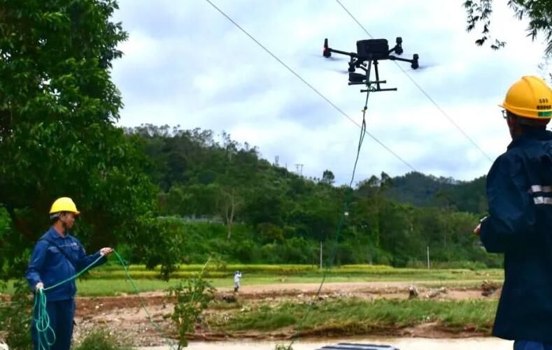 爭(zhēng)分奪秒全力開(kāi)展搶修爭(zhēng)取群眾早一刻用電一輛無(wú)人機(jī)牽引著拉線緩緩升起,正在跨越河水湍急的黃華江支流。在茂名信宜市朱砂鎮(zhèn)元墩村,茂名信宜局朱砂供電所搶修隊(duì)伍正在使用無(wú)人機(jī)協(xié)助放線,爭(zhēng)分多秒加快抗險(xiǎn)搶修進(jìn)度。