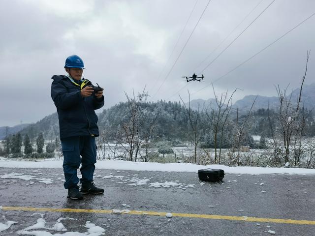 雪鵝毛般下得很大,一路上車(chē)很少,鄭鋒將車(chē)提前裝好防滑鏈后一直保持不超過(guò)30碼的車(chē)速小心行駛,到達(dá)110千伏黃牽線40號(hào)塔附近,室外氣溫已達(dá)-5度,迎著刮臉刺骨的風(fēng),4人向塔所在的山腰挺進(jìn)。一時(shí)間雪下小了,短暫的“空窗期”給了他們飛無(wú)人機(jī)的絕佳機(jī)會(huì)。