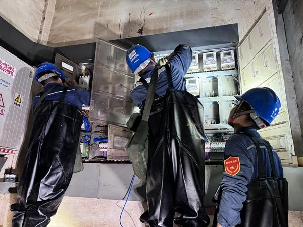 6月22日下午,南方電網(wǎng)廣西欽州浦北供電局黨員突擊隊(duì)在桂林市興進(jìn)漓江壹號(hào)小區(qū)地下室更換配電開關(guān)。羅陽(yáng)攝