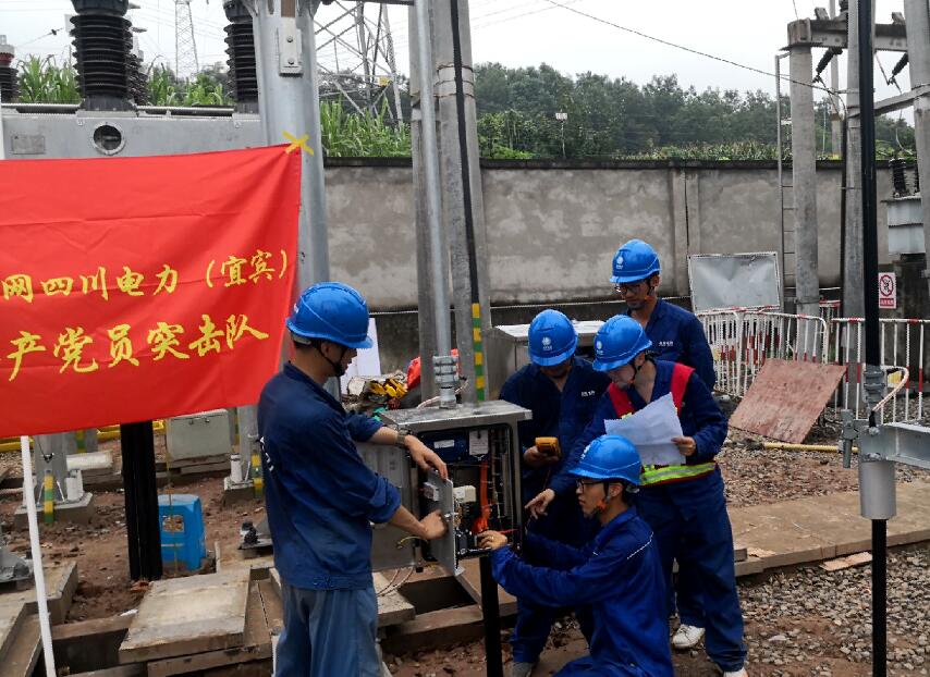 本次擴(kuò)建工作時(shí)間緊、任務(wù)重,國(guó)網(wǎng)宜賓供電公司變電運(yùn)檢中心特別組織了電氣試驗(yàn)、變電一次、變電二次等專業(yè)共產(chǎn)黨員20余人組成突擊隊(duì)奔赴現(xiàn)場(chǎng),搶時(shí)間、趕進(jìn)度,加班加點(diǎn)作業(yè)。烈陽(yáng)當(dāng)空,隊(duì)員們服著防暑降溫藥品,趁著工作間隙灌幾口水,鏖戰(zhàn)高溫;陰雨連綿,隊(duì)員搭起一塊塊木板作“雨棚”繼續(xù)奮戰(zhàn);夜幕降臨,隊(duì)員們又點(diǎn)上一盞盞臨時(shí)照明挑燈夜戰(zhàn)。