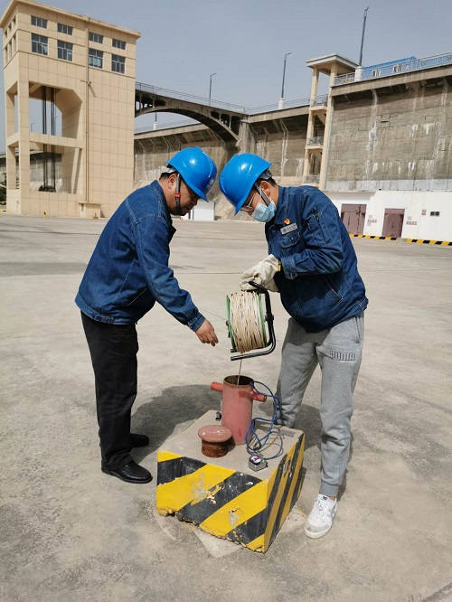 劉家峽水電站大壩的安全直接決定著下游數(shù)百萬民眾的生命財產(chǎn)安全,自該項工程開始施工便同步開展大壩觀測,按照水工安全規(guī)程與觀測規(guī)程要求,進行變形監(jiān)測、滲流觀測和應(yīng)力應(yīng)變觀測,并對觀測數(shù)據(jù)定期整編與統(tǒng)計分析,為大壩定期檢查、鑒定提供依據(jù)。左右岸繞壩滲流水位孔測點分布在山坡上,數(shù)量多且分布范圍分散,因此測量難度非常大,人工測量不僅是體力活也是需要耐心和細(xì)心的活。“測鐘”是此次測量的重要設(shè)備,利用測鐘觸碰水面?zhèn)骰貋淼?ldquo;咚”聲音來測量水位,有些地下水位孔深達(dá)90m,用測鐘測量已經(jīng)聽不到回聲,測一個深孔就得半個小時,一百多個測點,幾十米的水深,一組“測鐘”加上線重量達(dá)十多斤,李亞洲提著“測鐘”行走在左右岸山坡間,每天天亮就上班月亮升起才下班,就這樣連續(xù)工作多天終于完成了所有地下水位孔的測量工作。