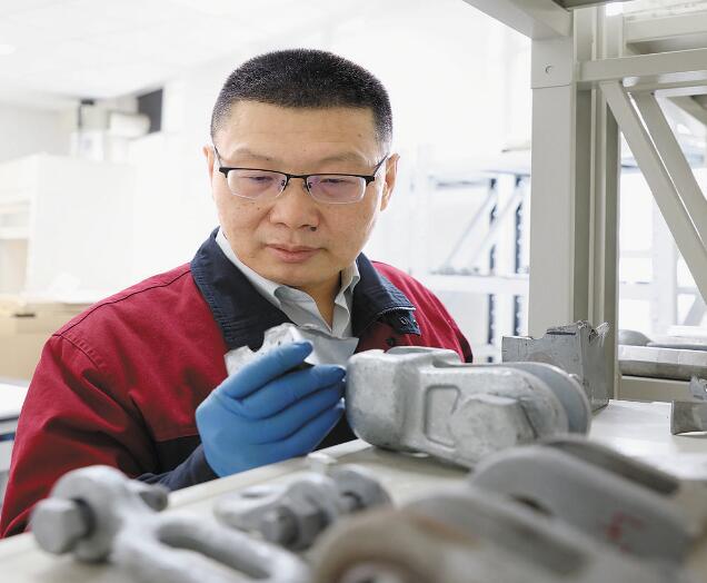 金具是連接和組合電力系統(tǒng)中各類裝置的金屬附件。小到螺栓、掛環(huán),大到超特高壓線路上使用的導(dǎo)線間隔棒,何成都要仔細(xì)檢查,確定金具合格后才能確認(rèn)金具進(jìn)入生產(chǎn)流程。