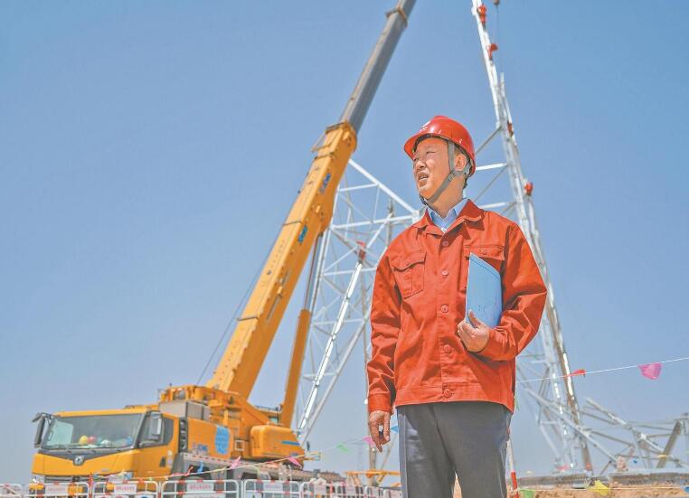 4月25日,隴東—山東特高壓直流工程晉2標段鐵塔組立現(xiàn)場一片繁忙,這是整個標段最重的一基鐵塔。韓愛平拿起對講機,目不轉(zhuǎn)睛地盯著塔材起吊,不時和作業(yè)人員對話。等最后幾顆螺栓緊固完成,他才放下對講機。他說:“越是施工關(guān)鍵階段,越不能忽略細節(jié),必須落實好最小單元管控機制,確保鐵塔安全高效組立。”該標段組塔施工全部采用機械化作業(yè),根據(jù)地形條件和塔材情況分別采用35噸、130噸和200噸吊車進行流水化起吊。這種精細化施工方法進一步提高了施工安全系數(shù)和效率。