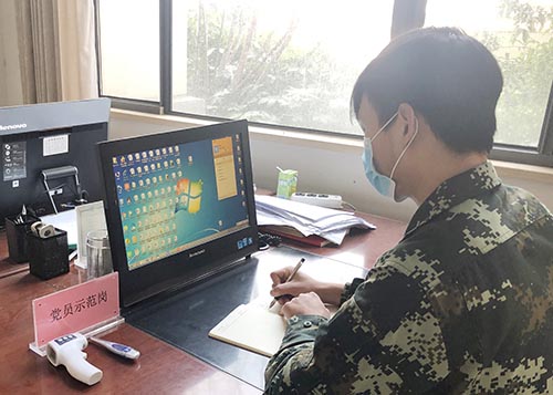 公司復(fù)工開(kāi)始,人員陸續(xù)返崗,高祥書(shū)變得更加忙碌,他帶領(lǐng)其他黨員設(shè)立隔離區(qū)、加強(qiáng)管控,負(fù)責(zé)日常送飯,并有序展開(kāi)裝備啟封保養(yǎng)工作,用實(shí)際行動(dòng)守護(hù)著大隊(duì)的一方安寧。