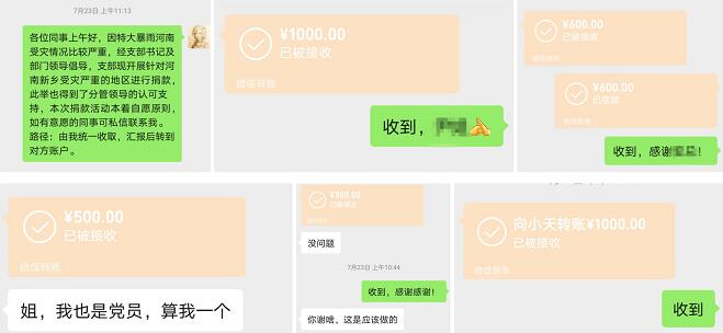據(jù)悉,河南遭遇特大暴雨,多地發(fā)生嚴(yán)重洪澇災(zāi)害。河南省輝縣市常村鎮(zhèn)氈匠屯村遭受洪澇災(zāi)害,農(nóng)作物受災(zāi),經(jīng)濟(jì)受損,村民們生活與人身安全受到影響。這些天,國(guó)網(wǎng)信通產(chǎn)業(yè)集團(tuán)國(guó)電通規(guī)劃與計(jì)劃管理業(yè)務(wù)事業(yè)部黨支部黨員們每天都留意新聞報(bào)道,關(guān)注河南災(zāi)情,希望能為河南做點(diǎn)什么。得知輝縣市常村鎮(zhèn)氈匠屯村受災(zāi)情況后,迅速響應(yīng),通過(guò)河南籍員工與當(dāng)?shù)攸h組織取得聯(lián)系,發(fā)出捐款倡議。倡議一經(jīng)發(fā)出,便得到了黨支部黨員、發(fā)展對(duì)象和員工的積極參與,迅速募捐到了11800元善款。在輝縣市常村鎮(zhèn)氈匠屯村遭受洪災(zāi)的關(guān)鍵時(shí)刻,迅速將善款打給他們,為當(dāng)?shù)匕傩仗峁┰?/p>
