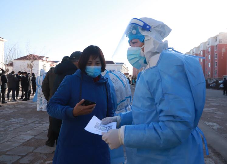 8時30分,核酸檢測準(zhǔn)時開始。“請各位居民準(zhǔn)備好自己的身份、健康碼,帶好口罩,有序入內(nèi)。”志愿服務(wù)隊成員薛東在檢測點門口拿著擴(kuò)音器說著注意事項。重復(fù)的話不知道重復(fù)了多少遍、二十幾米的路來來回回不知走了多少次。一切都在井然有序地進(jìn)行著。