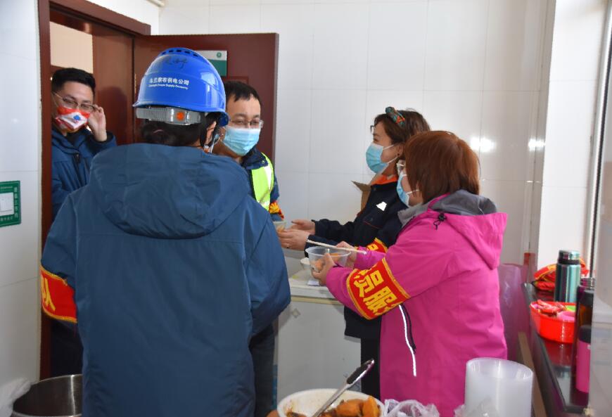 為使檢修一線職工以最飽滿的熱情投入到本次春檢工作中,四子王輸變電管理處成立的黨員服務(wù)隊(duì)為春檢的工作人員送去了暖心午餐。黨員服務(wù)隊(duì)的女同志說(shuō):“雖然我們不能工作在春檢一線,但是做后勤保障工作,也一樣是為檢修工作出力,在哪個(gè)崗位都要發(fā)光發(fā)熱。”