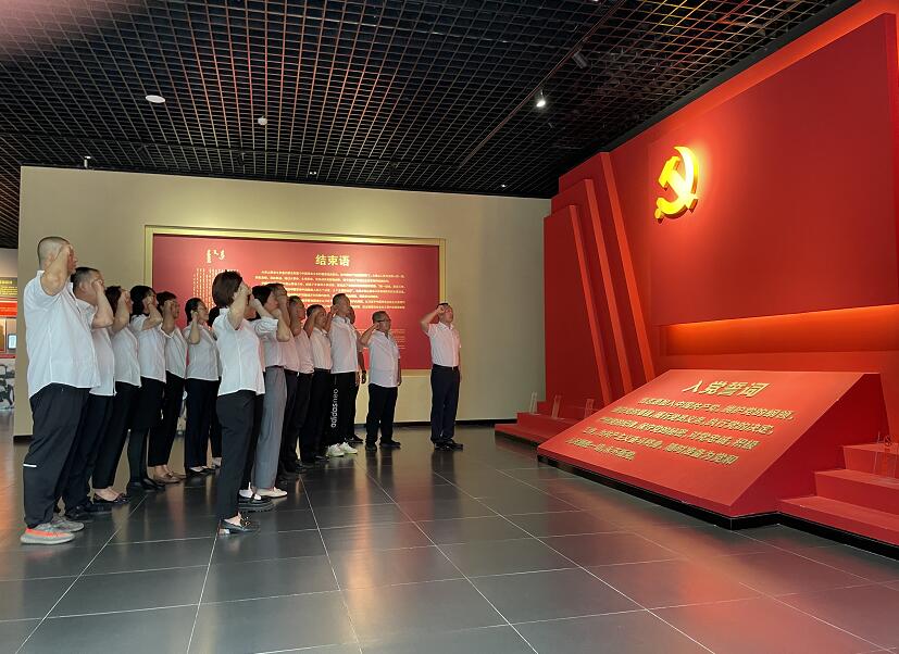 在參觀“五四運動和大革命時期大青山革命斗爭”展廳時,一艘永載中國革命史冊的紅船映入眼簾,黨支部副書記田清華同志以《紅色火種 曙光普照》為題,為大家講授了一堂生動的黨課。他提到,我們對中國共產(chǎn)黨建黨101周年的最好紀(jì)念,就是傳承和發(fā)揚黨的光榮歷史和優(yōu)良傳統(tǒng),黨員干部們要無比珍惜“先進基層黨組織”的榮譽稱號,并將榜樣的力量轉(zhuǎn)化為砥礪奮進、披荊斬棘的強大動力,要以飽滿的熱情,高昂的姿態(tài)不斷創(chuàng)造新的業(yè)績、鑄就新的輝煌!參觀結(jié)束后,全體黨員佩戴黨徽,舉起右拳,面對莊嚴(yán)肅穆的黨旗重溫入黨誓詞?;芈曕诹恋男?,激勵鞭策著我們——用無悔鐫刻為民服務(wù)的忠誠,用責(zé)任詮釋行業(yè)擔(dān)當(dāng)?shù)氖姑?