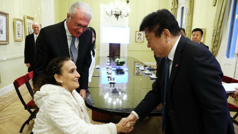 5月22日,南方電網(wǎng)公司黨組書(shū)記、董事長(zhǎng)李慶奎拜會(huì)阿根廷副總統(tǒng)米切蒂女士。(姜雨彤 攝)