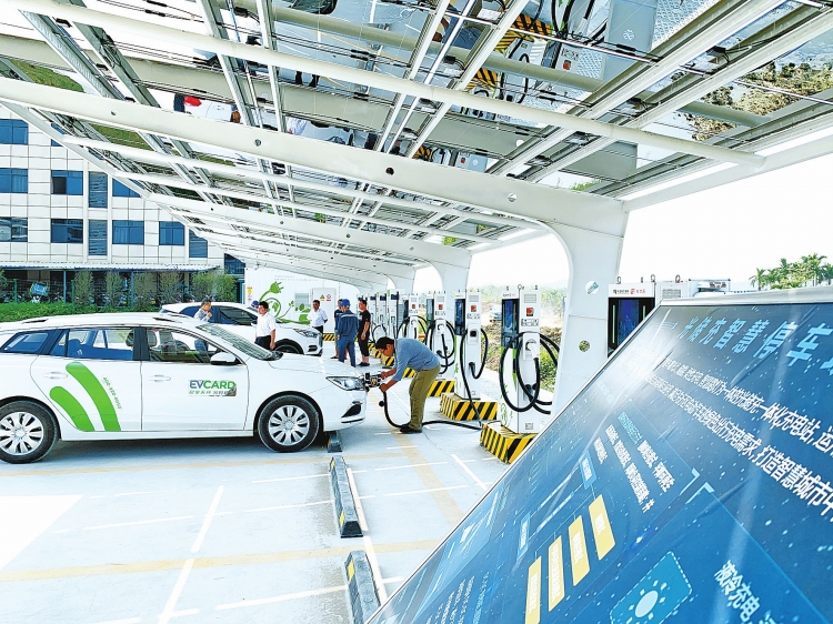 海南電網(wǎng)公司瓊海供電局工作人員正在對(duì)光儲(chǔ)充一體化智慧停車場(chǎng)進(jìn)行檢查。本版圖片攝影:南網(wǎng)傳媒全媒體記者賴增鵬通訊員盧傳隆