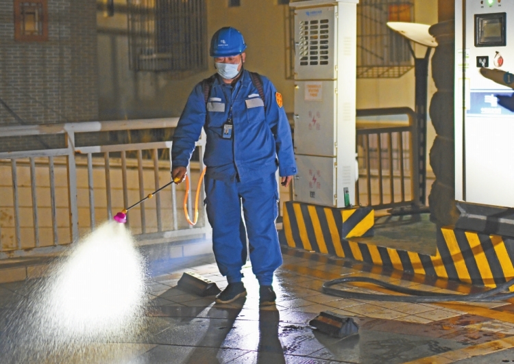 從2月2日晚上開始,廣西電網(wǎng)公司南寧邕寧供電局黨員服務(wù)隊(duì)每天組織3名黨員,在23時(shí)后對供電區(qū)域內(nèi)的電動汽車充電站進(jìn)行全面消毒,減少對用戶的影響,確保充電環(huán)境安全。馬華斌 攝