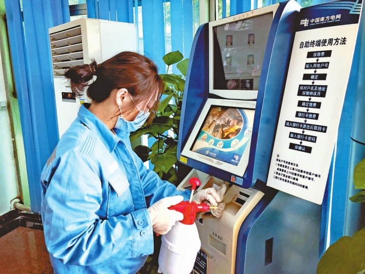連日來,廣東電網(wǎng)公司江門臺山供電局組織員工對營業(yè)廳、辦公場所和車輛進(jìn)行全面清潔消毒,做好防疫后勤保障工作。謝錕 攝
