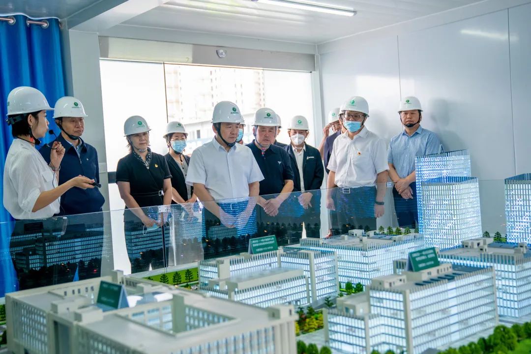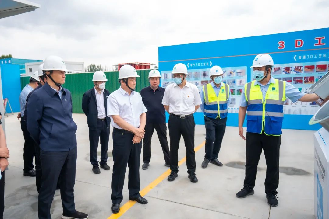 賈振國在項目施工現(xiàn)場,詳細詢問了解智慧工地指揮中心、項目標準化流程、安全生產(chǎn)措施、工程項目進度等情況,并召開座談會,現(xiàn)場研究解決工程推進中存在的問題。