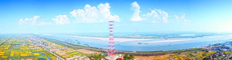 1000千伏南陽—荊門—長(zhǎng)沙特高壓工程跨長(zhǎng)江施工。 徐可 攝