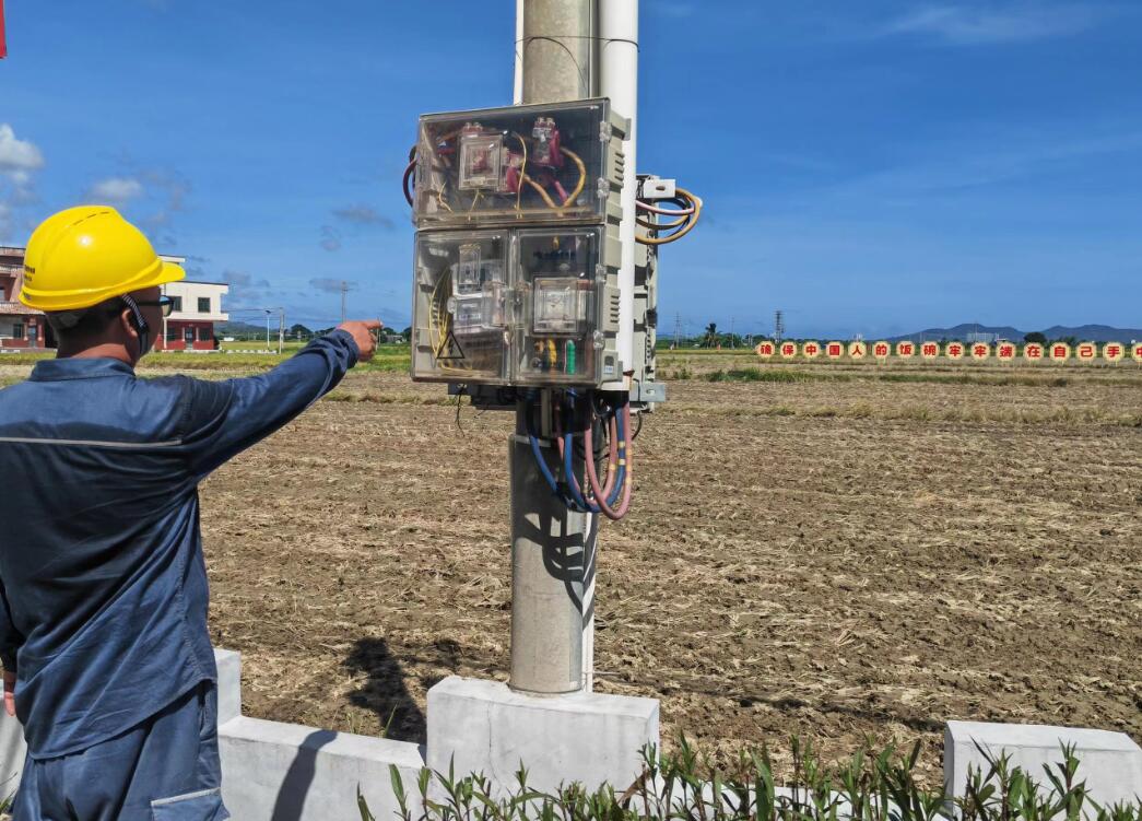 南方電網(wǎng)廣東陽江陽西供電局儒洞供電所客戶經(jīng)理對(duì)田間地頭的線路和用電設(shè)備進(jìn)行重點(diǎn)排查。