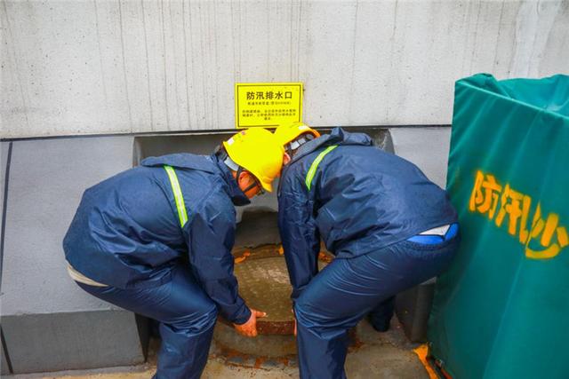 國網(wǎng)山東濟(jì)南供電公司員工加固110千伏廣場地下變電站防水擋板。