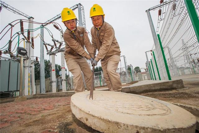 國網(wǎng)河南洛陽供電公司員工檢查110千伏勝利路變電站站內(nèi)排水口。