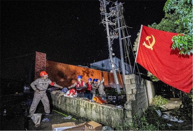 國網(wǎng)浙江溫州供電公司員工對浦亭社區(qū)山洪易發(fā)區(qū)供電設(shè)備開展防風(fēng)防汛特殊巡檢及清障工作。