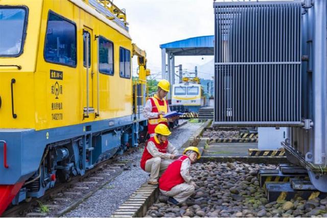 國家電網(wǎng)重慶電力紅巖(長壽園區(qū))共產(chǎn)黨員服務(wù)隊(duì)隊(duì)員對晏家火車牽引站開展安全用電檢查。