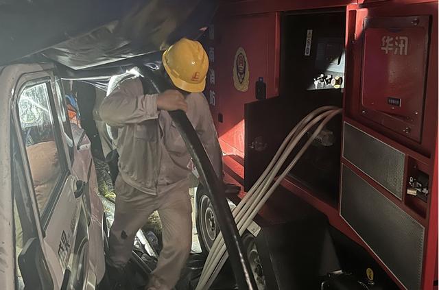 國網(wǎng)湖南岳陽供電公司員工在團(tuán)西排水點(diǎn)開展抽排水臨時(shí)電源施工。