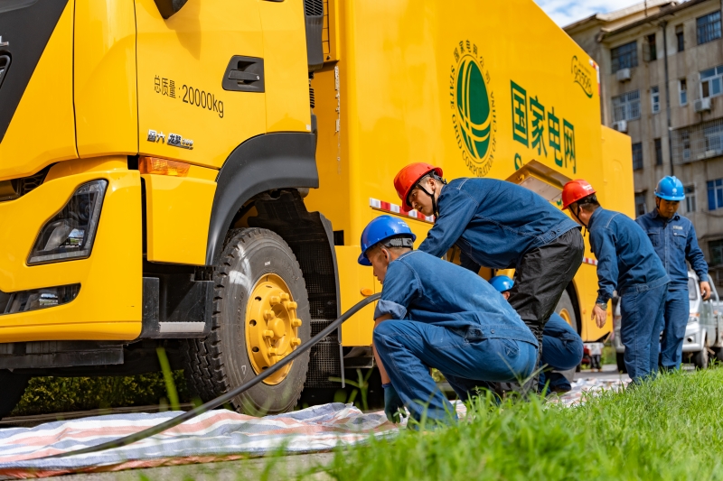國(guó)網(wǎng)青海西寧供電公司員工在10千伏堡十路現(xiàn)場(chǎng)開展電源車并網(wǎng)作業(yè)。