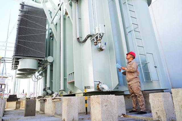 國網天津建設公司員工在蘆臺500千伏變電站擴建工程現場進行主變表計消缺復驗工作。