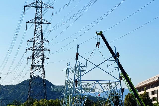 國網浙江杭州供電公司員工在500千伏嚴州變電站220千伏送出工程架設線路。