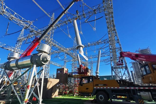 國網遼寧送變電公司施工人員在巴里坤±800千伏換流站開展罐式斷路器安裝作業(yè)。
