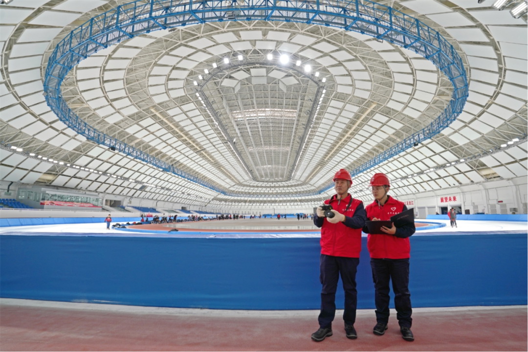 ▲國(guó)網(wǎng)黑龍江電力員工對(duì)亞冬會(huì)速滑館進(jìn)行特巡